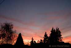 The day was bright, with hazy sunshine not lifting the temperature much above 8C, and to complement the frosty start it ended with a fiery, but rather untidy sunset (with hardly a natural cloud to be seen amongst the vapour trails in our very busy airspace).