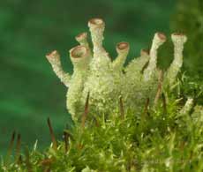 While I was photographing the lichen at the beginning of the month I noticed, but didn't mention that the moss was sending up dark-tipped spikes, seen here in front of that strange looking lichen growth.