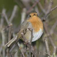 The cold start encouraged the Sparrows to gather at the top of the Hawthorn as the sun came over the rooftops, and they were joined, unusually, by the Robin, with its body feathers puffed up to give added insulation.
