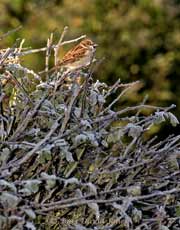 Even the Hawthorn looked white before the sun came over the rooftops enough to start warming its topmost branches, and this Sparrow, soon after 9am.