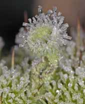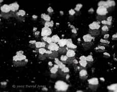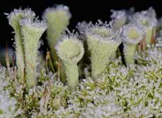 I took a brief look at the lichens on the caravan shelter. Everything was covered with ice crystals, but what stood out most were the podetia (the cups on top of stalks). These were all wearing crystal tiaras.