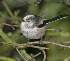 While I was waiting just in case it would appear again, a trio of Long-tailed Tits turned up and spent time at the fat balls. Talk about a ball of feathers!