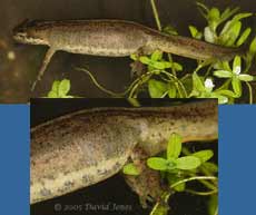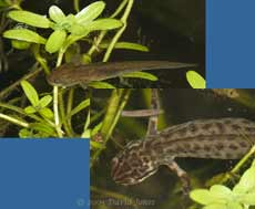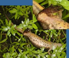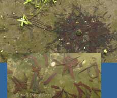 While the females were all busy, the males were always in close attendance usually around edges of the Starwort. Also in the middle of the action were several of the young newts. It's curious to ponder whether these are watching Brothers, sisters, half-sisters, or cousins being produced around them! Will they be mature enough to be part of the process next Spring?