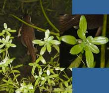 As well as the newts egg laying in the mass of the Starwort, other individuals, like this one, were busy around the edges. It was fascinating to watch as she chose a leaf. She would swim up to the plants first, and then turn away, waving about her hind legs until they came in contact with the plant. She then attempted to grip the leaf firmly, and if she couldn't succeed fairly quickly she would swim off and try elsewhere.