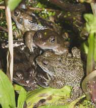 It continues to puzzle me why they gather in groups like this one, and stay in place for hours on end, even with another frog's foot on ones face.