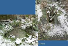 The picture shows the small pond tonight, after a light fall of snow earlier this evening. The forecast is for the present cold spell to last until next weekend.