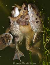 Go to last entry of the month....................Go to previous entry16 March - With overnight temperatures remaining above 10C, and sunshine helping it to reach 17C by noon, the frogs were very active, although it still seems as though most are continuing to wait.