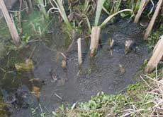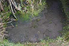 This picture shows the main area of spawn at 5.20pm, and there is not a frog in sight. My first impression is that there is less spawn then last year (compared with the image recorded on 15 March, when spawning finished in 2004).