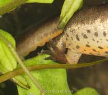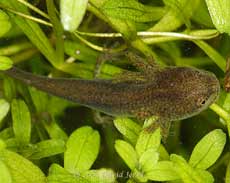 While the tadpoles are not yet ready to swim freely, it seems that they have to move their tails to attract the attention of a newt.