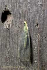 Going back to last night, when I went on my nightly pond inspection I came across this Lacewing fluttering around below the Birch tree before it landed on one of the bee hotels. To give the scale, the large hole measures 7mm across.