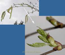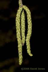 At the other end of the garden, I noticed last night that the catkins on the Birch were just starting to release pollen, five days later than in 2005.