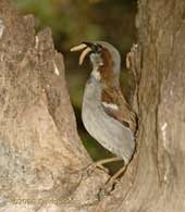 Another positive image at lunchtime is the sight of this House Sparrow, and his partner, taking mealworms up to one of the nestboxes on the side of the house. This is just four days later then my first record in 2005 of a sparrow taking insect food up to its nest.