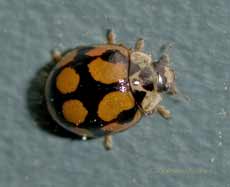 Another 'first of the year' photograph, this time of a ladybird on the side of a water butt. Very small, I think it's a 10-spot ladybird, and I only managed this one shot before it flew off. This is almost a month later than my first ladybird sighting last year.