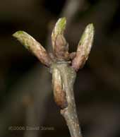 While the male catkins are situated at the tips of branches, where they are best positioned to shed their pollen in the breeze, the female inflorescences are further along.