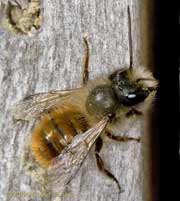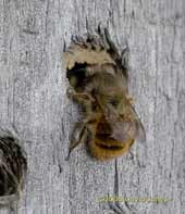 This bee was resting on the timber of the bee hotel. I think it could be a male, similar to the one glimpsed in the at previous shot, but the degree of hairiness of the abdomen leaves me rather uncertain - I need to watch them for longer.