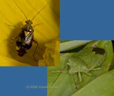 Finally, a couple of bugs with appropriate colourings. First, on the right is a regular Summer visitor a Common Green Shield Bug which closely matches the green of the bamboo leaves it was resting on. The other, much smaller bug (about 5mm long) is possibly a Tarnished Plant Bug (Lygus rugulipennis) and has yellow patches that match the Marsh Marigold flower it was on. Two insects worthy of note, but not photographed, was a Bee-fly, possibly Bombylius major, which I saw feeding at a Violet, and a pair of Holly Blue Butterflies which passed through the garden without landing.
