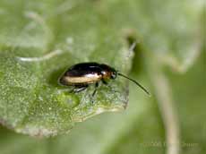 The Ragworts are also home to two types of Flea beetles, and I was able to see both today. The first was this Ragwort Flea Beetle (Longitarsus flavicornis),