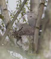 However, the gloomy conditions haven't put these Collared Doves from deciding to nest in my neighbour's Birch tree. While his partner works on their minimalist nest, the male has been bringing twigs to get the job done by breakfast! Click on the images to see larger versions - |