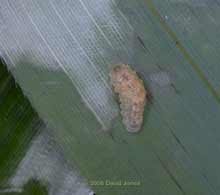 If you look at the larger version of this picture, on the right-hand side of the upper clump you can see what looks like the abdomen of a nymph (newly emerged?). In a second picture, taken just afterwards, it appeared to have moved - or is it just a different camera angle? I will be checking the leaf over the next few days to see what happens (if the bad weather doesn't blow or wash them away).