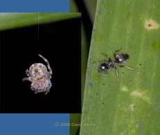 The same bamboo plant also yielded a single small banded snail, out of reach of the camera lens, just one small spider (left image) and an ant, presumably after a night-time feed on honey-dew.