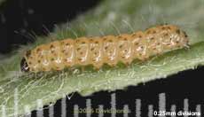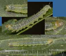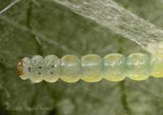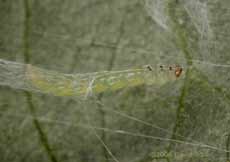 That was especially so at this moment which gives us a chance to get an idea of the caterpillar's size. The tube is almost exactly 5mm long, which make the stretched caterpillar about 7mm in length.