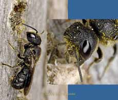 While they were carrying out their inspections, there was also one of our larger solitary bees doing the same thing, and as well as checking out the same hole it also chased the wasps away several times.