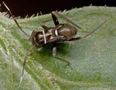One final pair of photographs - This afternoon I pruned a couple of Iris seed heads, which get top-heavy and topple over as they develop. As I picked one up I went to brush off my arm what I thought was an ant, until I took another look and found it to be this bug nymph which I have not seen here before.