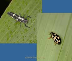 On the same bamboo plant I spotted something that is proving elusive this year, a ladybird - in this case a 14-spot Ladybird adult, and also a ladybird nymph of (I think) the same species. Even the Orange Ladybirds are few in number. I only see them occasionally, although I have found a third group of eggs on the Birch tree. The eggs that I photographed on the 16th hatched out yesterday.