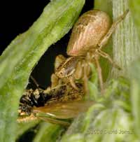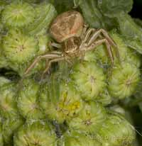 The Ragworts are getting close to flowering now, and this group of buds is already the ambush site for a 'crab-spider', possibly Xysticus cristatus (or X. erraticus).