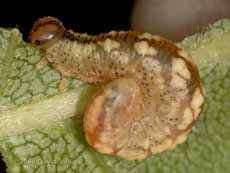 In addition to numerous sawfly larvae similar to the one photographed yesterday, I found two identical caterpillars on adjacent leaves at the end of a branch. I returned later to take more pictures but they had disappeared - bird food?