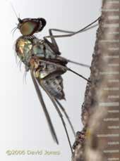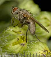 Finally, I didn't see any new 'guests' at the bee hotels today, but the posture of this small fly caught my eye as it rested at the side of one of the hotel blocks. I forgot to include on the image the fact that the scale shows 0.25mm divisions.