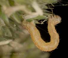 On another of the grass flower heads (yesterday) was this small looper caterpillar. While I can't identify the species, looper caterpillars are characteristic of the large, Geometridae family of moths.