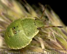The eggs on the grass are still intact this evening. Sometimes there are numerous bugs on the grass flower heads but this year they are remaining rather quiet. Today, the only insect obvious on any of the flower heads was this shieldbug nymph.