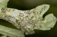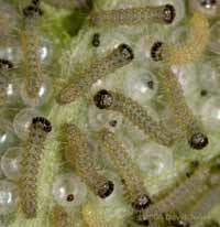 As these grow the caterpillars will turn yellow with bold black bands all along their bodies, although there is little sign of that yet.