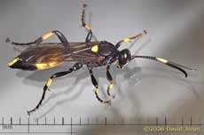 First of all, an ichneumon fly spotted at the bottom of the garden. I haven't been able to identify it so far, but the white stripes on the head look rather distinctive. It doesn't appear in my guides so I need to spend more time searching on the web.