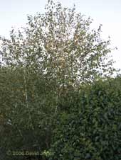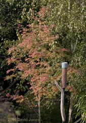 It didn't come into the garden but, as I waited, the sun came out and lit up the Rowan, showing up the red foliage against the greens of the Ivy (left) and the Birch.