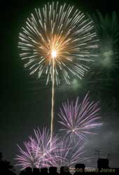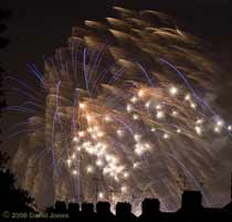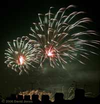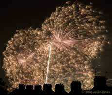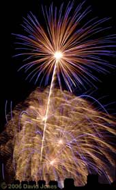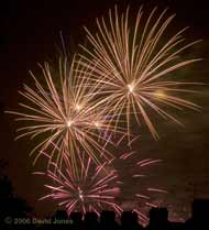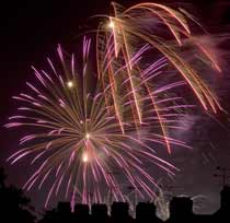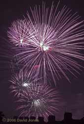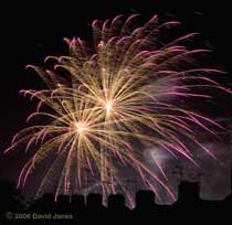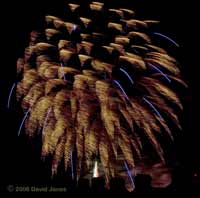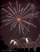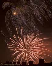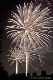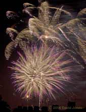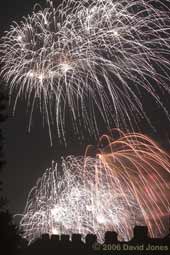 5 November - Bonfire Night - Another bright and sunny morning as the present cold and dry spell continues. Having said that, after several nights when the temperature dropped to nearly 0C, last night it didn't drop below 4C as cloud cover crept in, and at noon it was 11C while we sat out on the veranda to have coffee. For the last few days I've been struggling to stay awake as the CFS kicks in again, no doubt after doing the job on the porch, so I haven't been paying much attention to the garden. This morning the Fuchsia plant outside our front door is once again attracting wasps and noisy Bumble Bees, and I've seen another Red Admiral flutter by. In contrast, the Ivy is now a very quiet place. The official Aldershot Firework Display took place last night in Manor Park (our local park, just over the hill to the north of us) and, just like last year I took advantage of the scaffold tower to take photographs of some of the aerial fireworks that are visible from our back garden. Here are some moments from that display - I don't think there were as many of the really spectacular firework combinations this year and there seemed to be more repetition of firework types, but it was still a very good display.