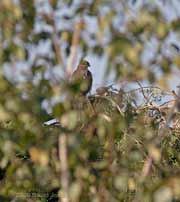 2 November - Another sunny day, with the temperature reaching 8C (the same as yesterday) after dipping close to zero last night giving a more definite frost first thing, but not cold enough to create any ice on the birdbath or ponds yet. There was less of a breeze today, but it was still enough to make it feel quite cold outside, especially up in the hide where I spent several hours. After yesterday's fiddling with the porch I needed to take things easy today, so I decided to set my camera up in the hide in order to capture some closer images of the Goldfinches when they came to feed on the seed heads in the Birch. I spent time up there in both the morning and afternoon, but while I could hear them at the other end of the garden I didn't see one Goldfinch in the tree! There are still plenty of seed heads on the tree, so I'll probably watch for them again tomorrow. However, the time wasn't wasted as the hide also allows me to watch the conifers beyond the fence at the bottom of the garden.