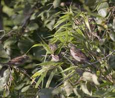 Even though the Sparrows seem to be mainly vegetarian at this time of year they still have a taste for insects which they find on the leaves of the bamboo plants. This group were on the large clump of bamboo in front of my workshop shed, working their way around the leaves, many of which still have groups of aphids as well as small numbers of Bark-flies.