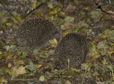 Tonight, with the temperature still 11C at 10pm,the hedgehogs are out and about again, and I've just taken this picture through the patio window - this pair have found the pile of chopped peanuts that I put out earlier.