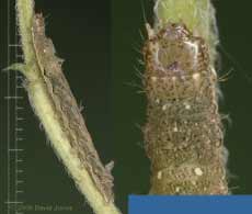 and several snails like this one on dead Bur-reed leaves. I first noticed this species back in April when I found some on the Marsh Marigold leaves at the other end of the pond, and I have still to identify it (and the caterpillar).