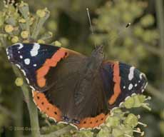 However, they do sometimes swoop on the Red Admirals when the latter are perched with wings spread. I spent ages today pointing my camera at a suitable butterfly but missed the moment. This blurred shot is the nearest so far (taken yesterday).