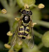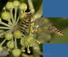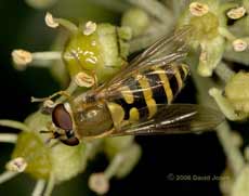 and hoverflies like this Syrphus ribesii, and Droneflies.