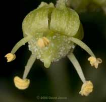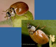 I'm not sure if this ladybird was actually feeding from them, although I did see it visit several flowers before it disappeared again into the foliage. To give an idea of scale, the flower bud in the upper image is about 4mm in length. The ladybird's overall appearance (including a brown underside) suggests that it is probably a 10-spot Ladybird, but without any obvious spots - an ID confirmed by Tim Norriss. Newly emerged individuals are spotless, but their wing-cases are usually very pale.