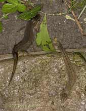 While the frogs leap about the garden, much more stealthy in their movements are the newts.