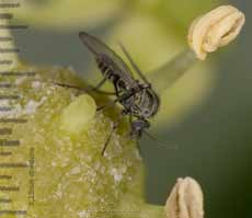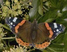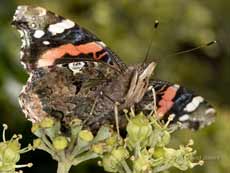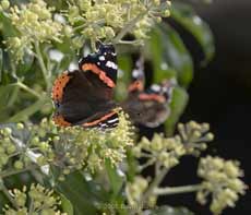 So far, I have seen no sign of any other butterflies in the garden. We usually get a few Holly Blues so I'm watching out for them. As impressive as the Red Admirals are, they were greatly out-numbered by the wasps (several dozen), true flies and Drone-flies - I only saw one other type of hoverfly ( a single Syrphus ribesii). There were numerous honey bees visiting today, so perhaps the message has got back to the hive! As well as the larger insects, there are relatively small numbers of smaller insects to be seen on the flowers.
