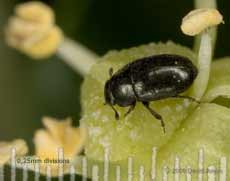 No ladybird today, but I did find this tiny beetle which stayed on the same flower all the time I was up the ladder.