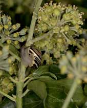 The final visitor to report on from last night is this snail which had made it to the top of the Ivy tree, and was still up there today (at least, I think it was the same one).