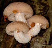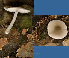 Today's identification problems continue with two more fungi that have produced fruiting bodies. The first was this single head growing out of a rotting log by my workshop shed, and measures around 7cm across.