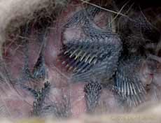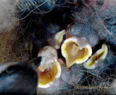 but then pushed it into the mouth of a chick that hadn't reached up as high. Notice how the eyes are open in both of these images.